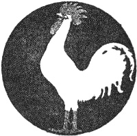 “Nem’ine whar de hants is terday. I’m talkin’ ’bout de rooster telerfome. Yer see Peter’s rooster’s settin’ up in rooster heb’n keepin’ his eye out fur all de news. He nuv’r do go ter sleep reg’lar; sometime at[Pg 29] night he sorter nod er lit’le, but he nuv’r do git in bed, caze he feer’d Mist’r Sun wake up ’fo’ he do. Well, whin he heah ole man Sun gap loud, an’ turn hisself ov’r an’ scratch, he know he fixin’ ter git up, an’ dat minit he flap his wings an’ telerfome loud es he kin ‘de break er day is c-o-m-i-n’’ (imitating the rooster). Ole man Diminicker down yonder on yo’ gran’pa’s rice plantation, down on de aige er de oshun, is de fus ter git de news. He stir hissef erbout an’ flop his wings, an’ telerfome loud es he kin, ‘de break er day is c-o-m-i-n’.’ De rooster on de nex’ plantation gits de wurd an’ dey passes hit on tell our ole rooster gits hit way up hyah in de mountains. Den our ole Shanghi keeps de wurd er gwine, tell ev’ry chickin fum one side de country ter de uth’r knows day fixin’ ter break.”