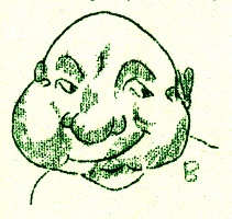 When fandom had its schism, Koot immediately developed a split personality. It was rather horrible. His left side—the scientific side—grew cold and hard and keen. He grew a Van Dyke on the left side of his face and his left hand was stained with acids and chemicals. But the right side of his face became dissipated and disreputable, with a leer in the eye end a scornful, sneering curve to the lip. He grew a tiny moustache on the right side, waxed it, and twirled it continually. It was rather horrid, but worse was yet to come.