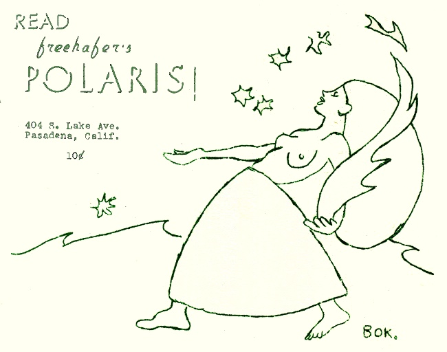 DALE HART POSTS: Bok cover good. Yerke and Reynolds interesting. Forrie's story unique. Yur poem full of thot but it didn't scan very well. MAYBE IT'S BECUZ I'M MORE BRITISH THAN I AM SCAN-DIN-AVIAN. (BRAD) How about an increase in pages—this issue much too small. HOPE YU LIKE THIS BIGGER SIZE, DALE.
