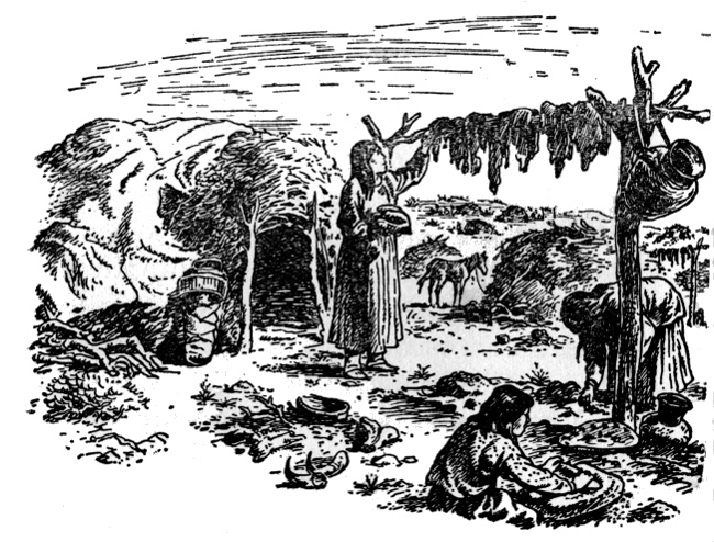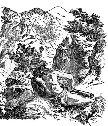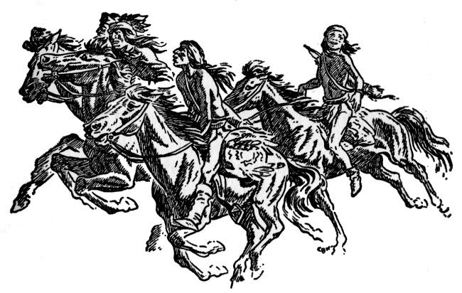 The dome-shaped wickiups where the villagers lived were softly beautiful in the early morning light. Here and there the embers of last night's cooking fire—for in this fine spring weather the Apaches did most of their cooking out of doors—glowed like a star fallen to earth. But except for the sentries who had been up all night, and the raiders about to set forth, the village slept.