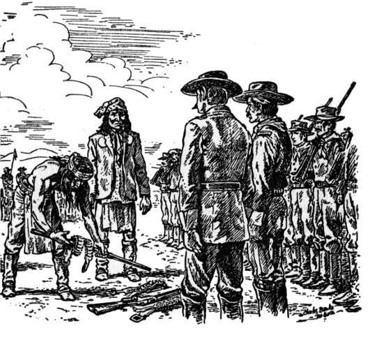Later Geronimo stood very still as he watched Lieutenant Gatewood and his group come near. Lieutenant Gatewood had been ill and showed it. But he was armed as a warrior should be, and mounted as a warrior should be, and he was completely at ease. True to his word, he was accompanied only by the six couriers and two interpreters.