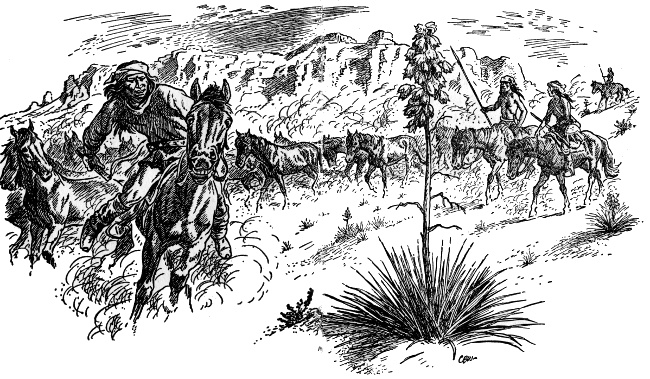 When all the raiders were mounted, Nadeze and Sanchez left the others. Presently they returned driving a dozen loose horses among which was a beautiful spotted apaloosa. This horse had belonged to a shaman, or medicine man, of the White Mountain Apaches and had been taken from him in a night raid.