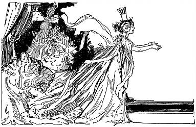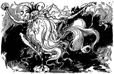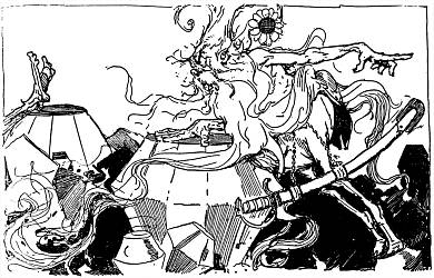 Therefore the King stormed and raved all by himself, walking up and down in his jewel-studded cavern and getting angrier all the time. Then he remembered that it was no fun being angry unless he had some one to frighten and make miserable, and he rushed to his big gong and made it clatter as loud as he could.