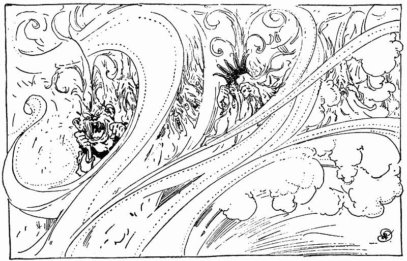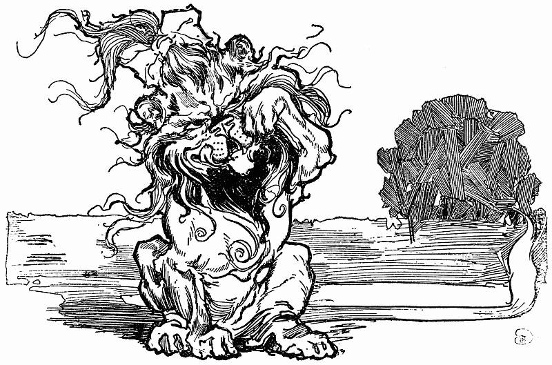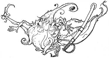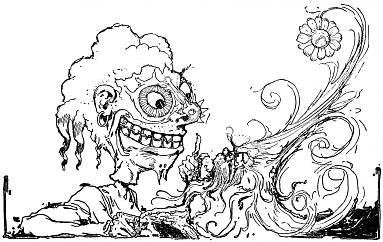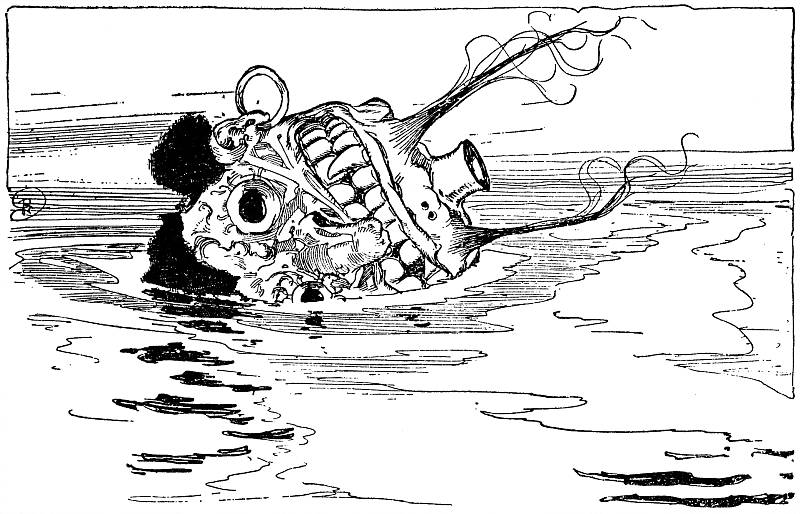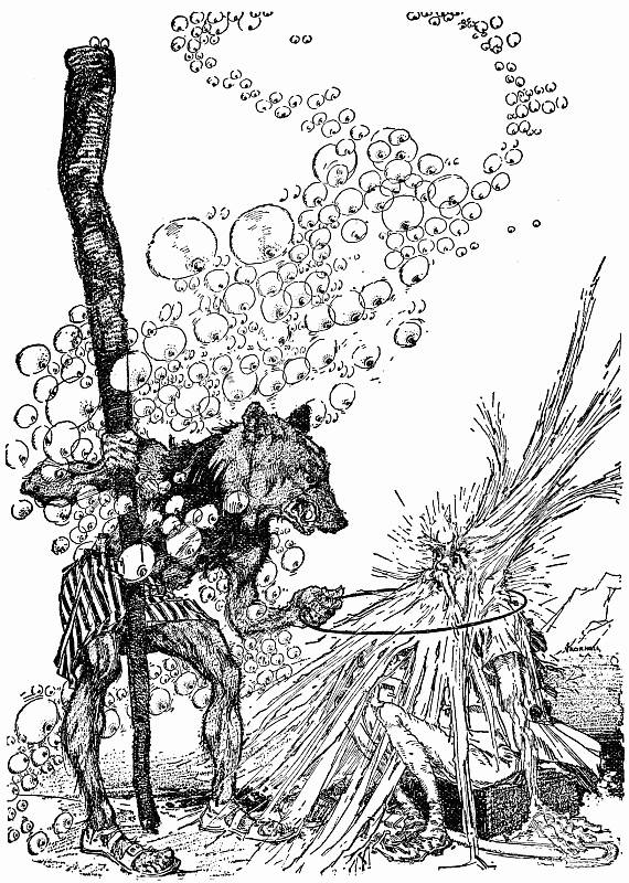 But now the Grand Gallipoot arrived, rushing from the[283] tunnel with a hoarse cry of mingled rage and thirst. He too saw the fountain and hastened to drink of its forbidden waters. The other Growleywogs were not slow to follow suit, and even before they had finished drinking the Chief of the Whimsies and his people came to push them away, while they one and all cast off their false heads that they might slake their thirst at the fountain.