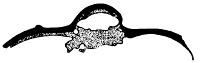 Fig. 4. Specimen 227. The small doubly curved bodies shown in this figure lie under the axial portion of the cephalon and anterior part of the thorax. The specimen still has a very thin coating of matrix between it and the shell. Whether the curved bodies have anything to do with the trilobite is not known, × about 12.