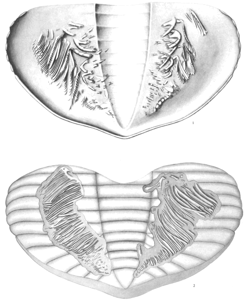 Part II is a discussion of the internal anatomy of the trilobite and a brief statement of some of the possible habits and methods of life of these animals. Part III, which begins with a survey of the relationships of the trilobites to other Arthropoda, is largely taken up with an attempt to demonstrate the primitive characteristics of the former, and their probable ancestral position. The form of the ancestor of the trilobite is deduced from a study of the morphology, ontogeny, and phylogeny of the group, and evidence adduced to indicate that it was a depressed, flattened, free-swimming animal of few segments.