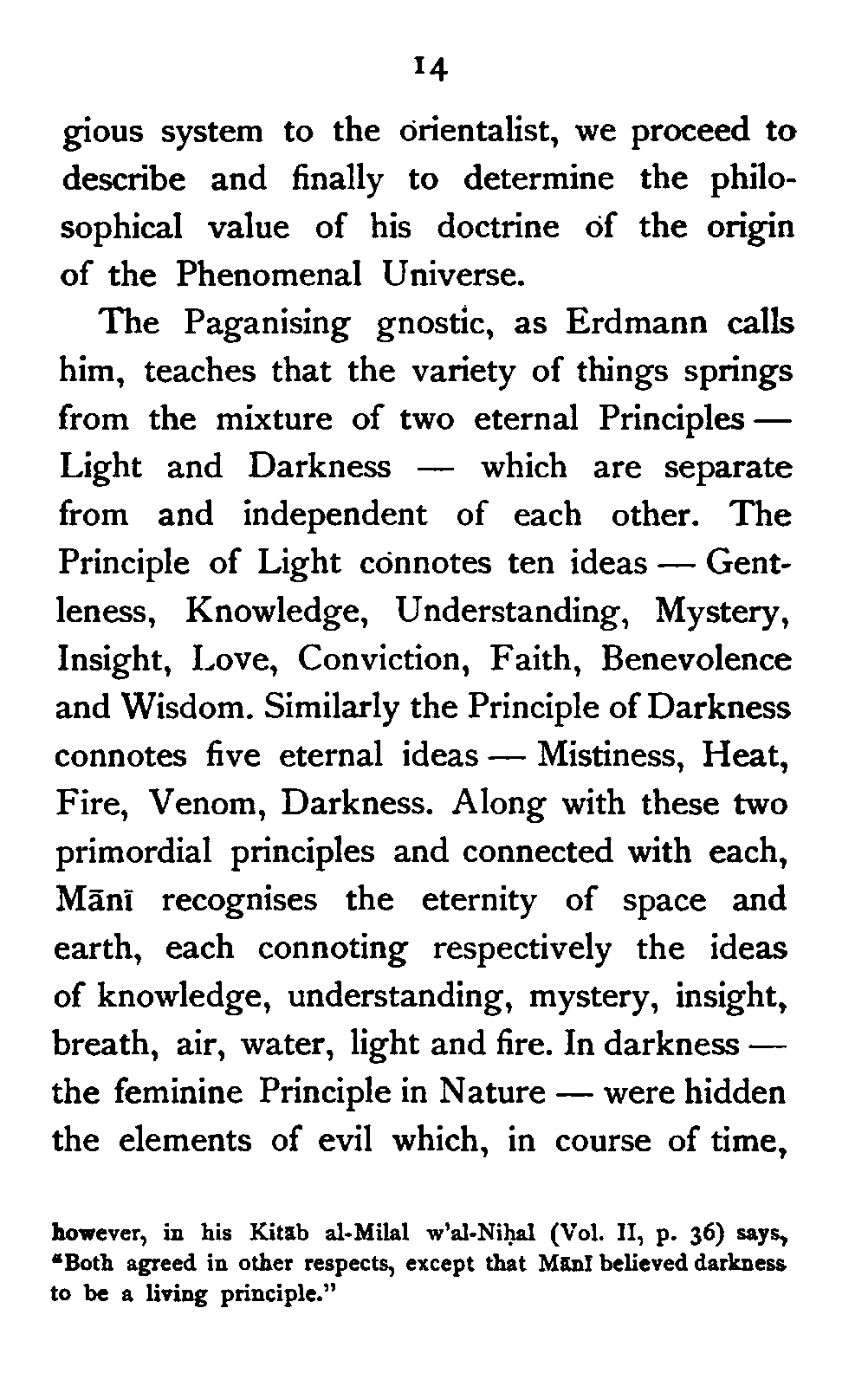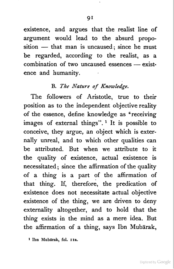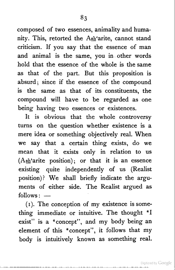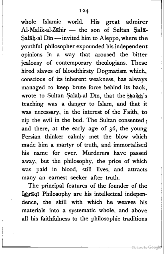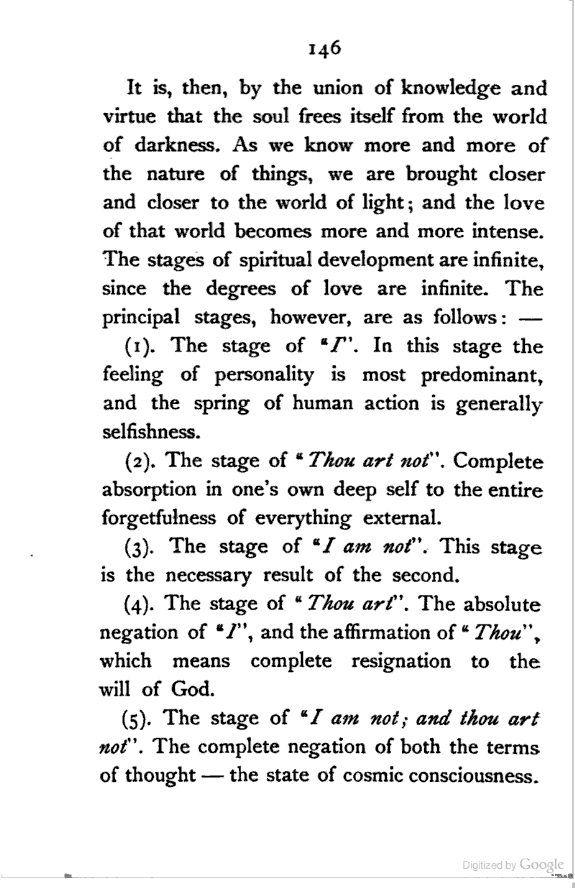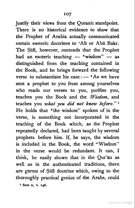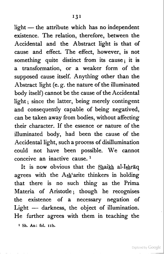 (b) I have discussed the subject of Ṣūfīism in a more scientific manner, and have attempted to bring out the intellectual conditions which necessitated such a phenomenon. In opposition, [Pg xi] therefore, to the generally accepted view I have tried to maintain that Ṣūfīism is a necessary product of the play of various intellectual and moral forces which would necessarily awaken the slumbering soul to a higher ideal of life.