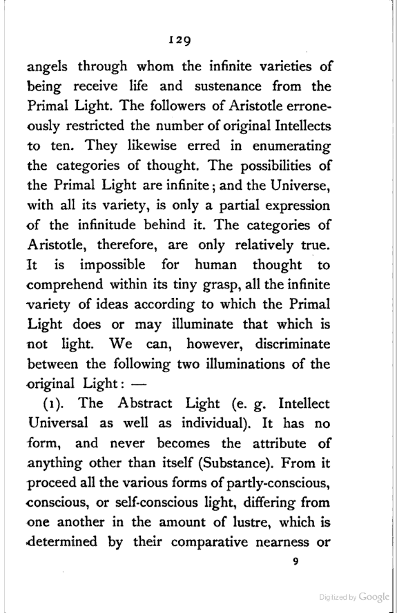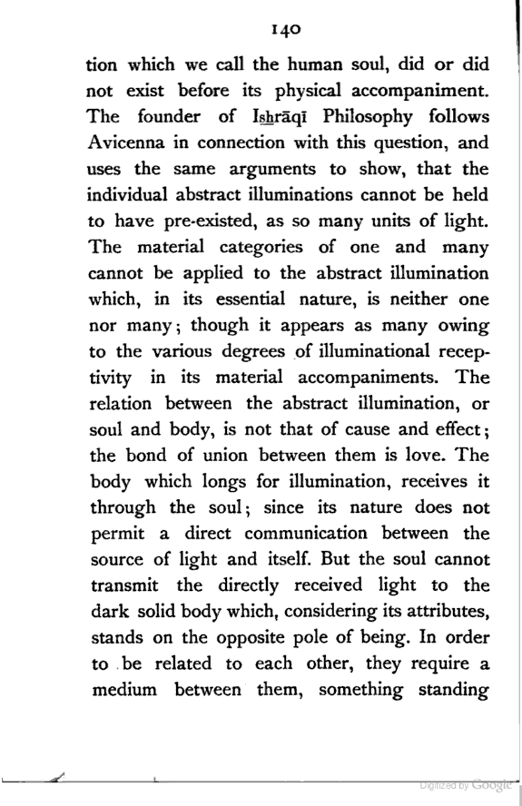 The object of this investigation is, as will appear, to prepare a ground-work for a future history of Persian Metaphysics. Original thought cannot be expected in a review, the object of which is purely historical; yet I venture to claim some consideration for the following two points:—