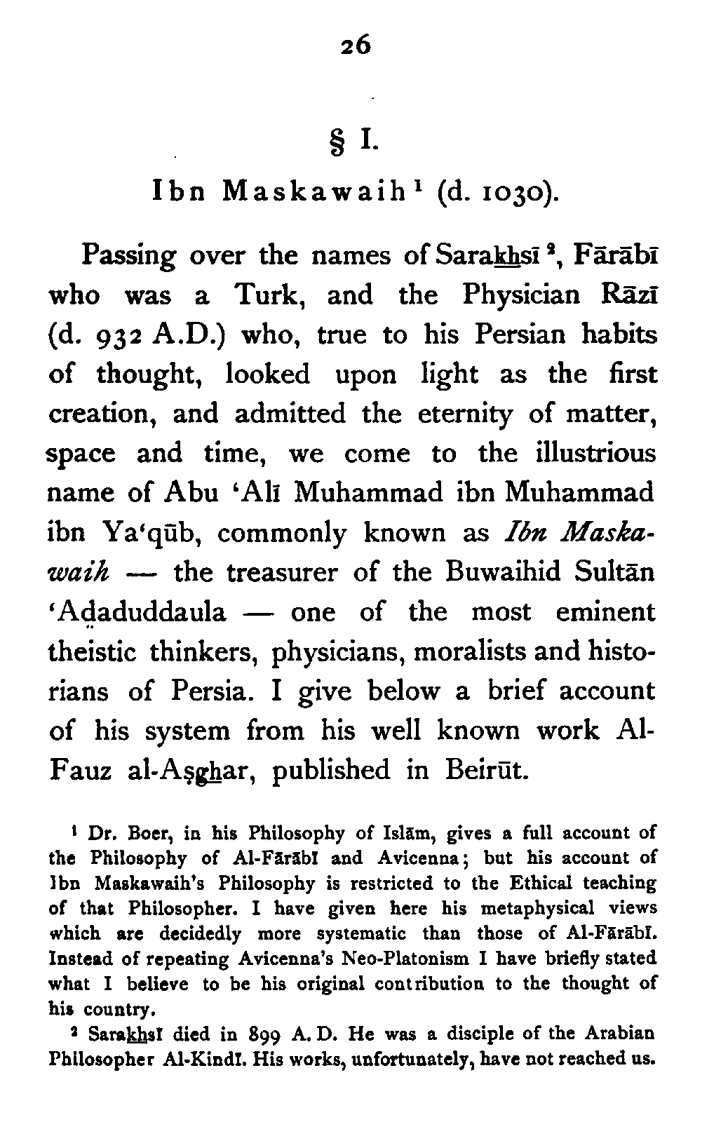 | Sec: I. | Ibn Maskawaih | 26 |