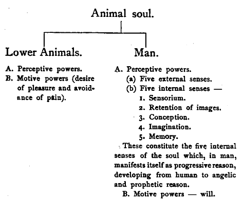 (3). The power which perceives individual ideas. The sheep thinks of the enmity of the wolf, and runs away from him. Some forms of life lack this power, e.g. the moth which hurls itself against the candle-flame.