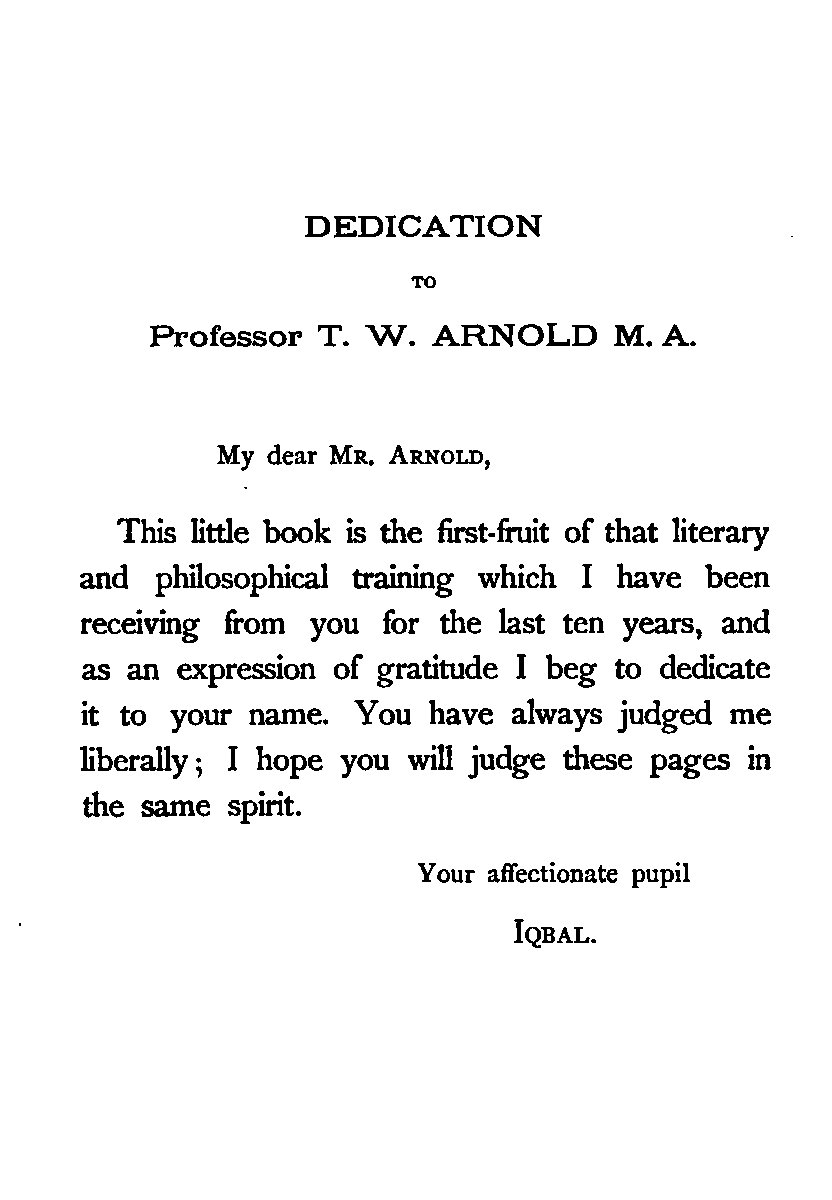 This little book is the first-fruit of that literary and philosophical training which I have been receiving from you for the last ten years, and as an expression of gratitude I beg to dedicate it to your name. You have always judged me liberally; I hope you will judge these pages in the same spirit.