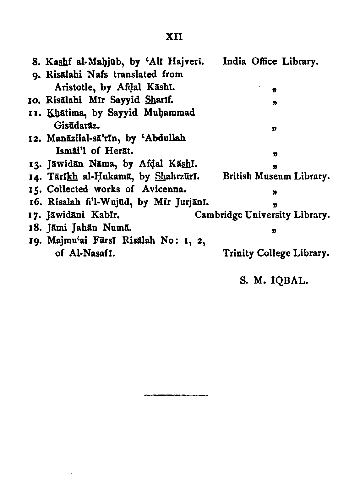 | 7. Mishkāt al-Anwār, by Al-Ghazālī. | India Office Library. [Pg xii] |