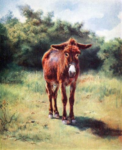 Rosa Bonheur was inimitable in the art of seizing the expression on the face of an animal. Here, for instance, is a study of an ass which makes quite a charming picture. Note the admirable rendering of the animal’s attitude, which is half obstinacy and half resignation, while the worn-out body weighs so heavily on the shrunken legs!
