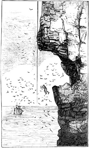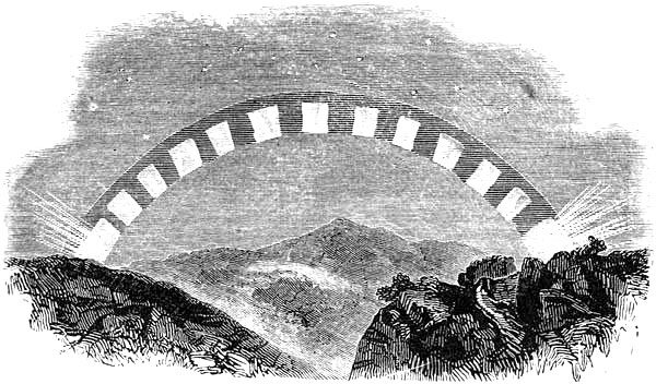 “While we were standing on the exposed side of the crater, very intent in observation, all of a sudden the volcano gave a tremendous roar. It was like the crash of a long line of artillery, and was instantly succeeded by such a discharge of stones as we had never before seen. At the same moment, the wind, which was very high, gave an irregular gust, which directed a great part of the stones towards the place where we were posted. Hence our situation was for a minute or two very perilous; but there was no shelter near, and we stood still, looking at the descending shower which fell around us. We, however, happily sustained no other injury than a short alarm, and having some ashes dashed in our faces by stones which fell near us. Two or three gentlemen who were[Pg 949] ascending the cone after us, were not quite so fortunate, for many of the stones falling outside of the ridge, rolled down the side with great velocity, loosening and carrying with them lumps of cold lava, &c. some of which struck those persons on the legs with great violence, and nearly precipitated one of them headlong to the foot of the cone.