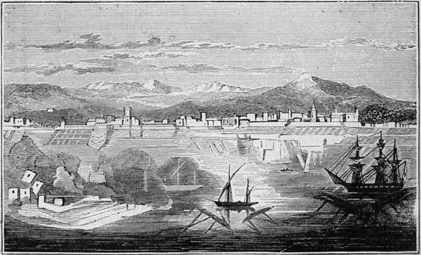 “Towards the evening of Tuesday, February the 26th, as appearances promised a good night’s work, we set off from Naples to view the operations nearer; the road to Resina was covered with people going and returning, as if a fair had been in the vicinity. When we reached the spot where strangers are on common occasions surrounded by guides, and asses, and mules, to conduct them up to the mountain, we found that no animals were to be procured, and it was with difficulty we could get a stupid old man for a cicerone, who rendered us no other service than carrying a torch. The ascent was thronged with people, some pushing on eagerly to the object of their curiosities, and others returning, and discussing what they had seen. Far below San Salvator we saw the stream of fire rolling along a wide hollow, and approaching the path by which we were going up: it was then, however, at a considerable distance, and its course was very slow. On reaching the hermitage, we refreshed ourselves as well as the crowd there assembled would permit; we then continued our journey, and approached the lava, which was chiefly formed by the eruption of January, 1821. We found it about thirty feet wide; it was not liquid lava, but consisted of ashes, ignited[Pg 948] stones, and old masses of volcanic ejections, swept away by the present eruption, and heated again. These lumps, rolling over each other, produced a strange clinking noise. Some of them were of a very great size; and the whole stream, though descending a steep cone, moved but slowly.