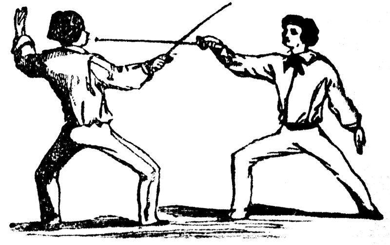 I have said and shown that a man standing foil in hand, in the position of the guard, is exposed in four distinct places to thrusts from an adversary within longeing distance. I have also shown that he has a defense for each of these exposed places; but if a man has but one defense for each assailable part, then his adversary, knowing beforehand what the defense must be, would be prepared beforehand to deceive him. But if he has a reserve—if he has a second defense for each part—then the adversary cannot tell what the defense will be, until his attack, false or real, is begun.