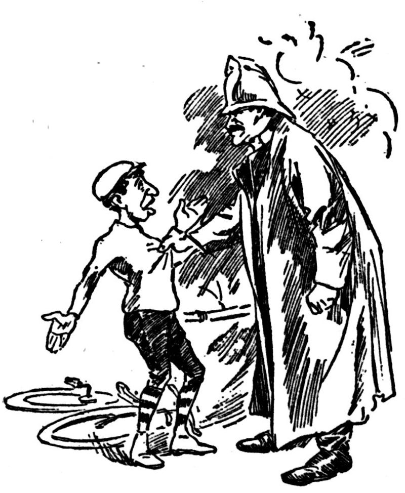 Half a dozen times the driver had to pull up suddenly to avoid running over the nervy little Hebrew, and this of course made the firemen riding with the machine furious.