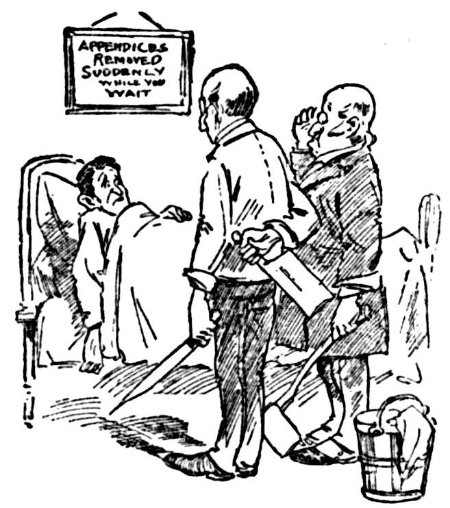 Tom was a confirmed dyspeptic, too, and when[Pg 8] the operator was taking an X-ray photograph of the seat of his troubles, this waggish brother of mine, with a ghastly attempt to be facetious, said: