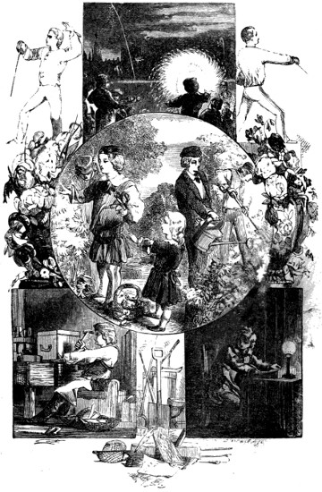 It would be impossible for a single author to produce a book of this description with a fair prospect of success, because it necessarily treats of many subjects; and a perfect acquaintance with some of the more important would occupy a lifetime. The reading and researches of one man would not be sufficiently extensive to embrace the rich variety of the materials required. Being fully convinced of this fact, the Publishers have endeavoured to obtain the aid of the most distinguished writers in the various departments of knowledge which the following pages are intended to illustrate. Thus each contributor, in furnishing his quota of information for the work, has been engaged in a congenial task, one best suited to his peculiar turn of mind, as well as to his individual acquirements, and one upon which he could, therefore, with the greatest ease and accuracy dilate. This brief explanation will show in what spirit the Publishers embarked in the undertaking; and the accompanying list of the writers may be received as a proof that they have succeeded in securing the services of the most competent authorities. With that portion of the book with which he was practically acquainted each of the following gentlemen has dealt: W. Martin, Esq., C. Baker, Esq., R. B. Wormald, Esq., J. F. Wood, Esq., A. McLaren, Esq., Stonehenge, author of “Rural Sports,” and the Rev. J. G. Wood, author of several works on Natural History, who also furnished some of the designs. The remaining illustrations are by William Harvey and Harrison Weir; and the credit for the able manner in which they have been engraved is due to the brothers Dalziel.