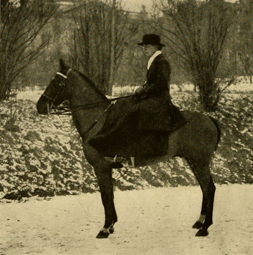 Although learning to ride in childhood is certainly an advantage, yet age is not necessarily an impediment to a woman’s learning the art. I have known many women who have never been on a horse’s back until they were forty years of age, or even older, who, after a few courses of lessons, have derived much pleasure from their riding, and, with application, have even become proficient. However, the best riders, like the best singers or pianists, are born, not made, and there is a grace about the natural rider that cannot be attained even by the most thorough training.