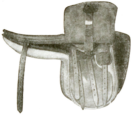 The saddle for cross riding generally used by women in the East is the same as a man’s, although some makers are offering a cross-saddle especially adapted for women (see illustration, page 155). These saddles are built more on the lines of an army saddle, having more dip and a straighter flap than those for men.