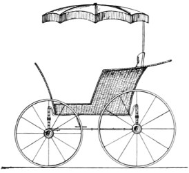 With regard to balance, the body of a tandem cart is made to slide on runners, and the position of the body is regulated by a screw with a handle which comes up under the driving cushion. This handle may be turned so as to throw the body backward or forward, according to the number of persons who are to sit in the cart; thus, if a groom is to sit on the back seat, the body of the cart should naturally be much farther forward than if the back seat were empty, and, for the same reason, if there is the additional weight in front of another person besides the driver, the body of the cart should be moved farther back than if the driver were alone. The proper position of the body of the cart—so that it will be in balance—can only be learned by experiment, for it varies, of course, with the angle of the shafts and the weight of the load to be carried.