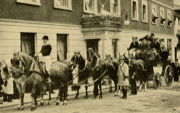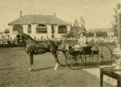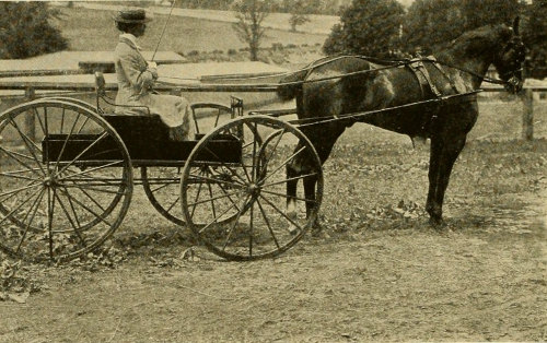 In going up driveways, as in approaching a country house, be sure to keep your trap in the middle of the road, and to keep your horses up to their gait, always with your horses well in hand. Needless to say, it looks very badly to cut in on the grass on either side or to look as if you were cutting W’s.