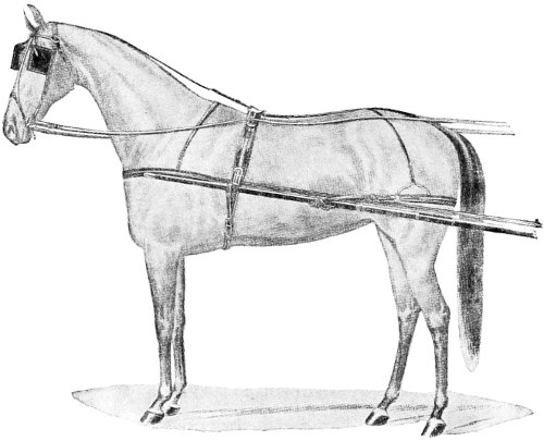 The harness should be of black patent-leather with square wire buckles. Crests, monograms, or initials should be small and inconspicuous: for a single horse, placed on the standing martingale; for a pair, on the breast plates.
