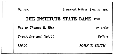 HOLDER OF CHECK.—It is important to remember that the holder of a check has no right against the bank. Thus, if I hold John Rockefeller's check,[Pg 401] drawn on the Institute National Bank, and I present it to the bank and the bank refuses to pay it for no reason at all, or for a purely arbitrary reason, I cannot sue the bank. The only thing I can do is to seek to get the money on the check from Mr. Rockefeller personally. This is because the drawing of a check is not the assignment of so much money to the payee named in the check. Of course, Mr. Rockefeller might sue his bank for failure to honor his check if it refuses to pay it to me for no valid reason. One further fact is important. When a holder of a check procures it to be certified by the bank, that releases all indorsers and also the drawer. And so, if I have a check drawn by Mr. Rockefeller and indorsed by six millionaires and I take that to the bank and have them certify it and then the bank fails, I have lost everything if the bank never pays anything to a depositor. By getting it certified I release Mr. Rockefeller and all of the indorsers.
