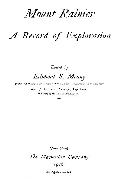 | Note: | Images of the original pages are available through Internet Archive. See https://archive.org/details/mountrainierreco00meanuoft |