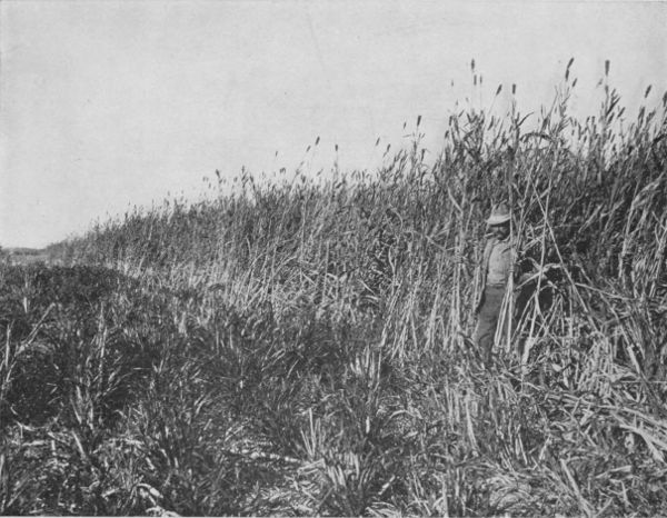 The main canal, which was begun in 1900, at the beginning of 1903 had grown to be one hundred miles long. This canal is seventy feet wide and eight feet deep, and supplies more than three hundred miles of lateral canals with water. The first season that water was turned into the canal, six thousand five hundred acres of crops were raised where for ages had been nothing but barren desert lands. The second season forty thousand acres were raised, and at the end of the season one hundred and twenty-five thousand acres of land had been broken ready for seeding.