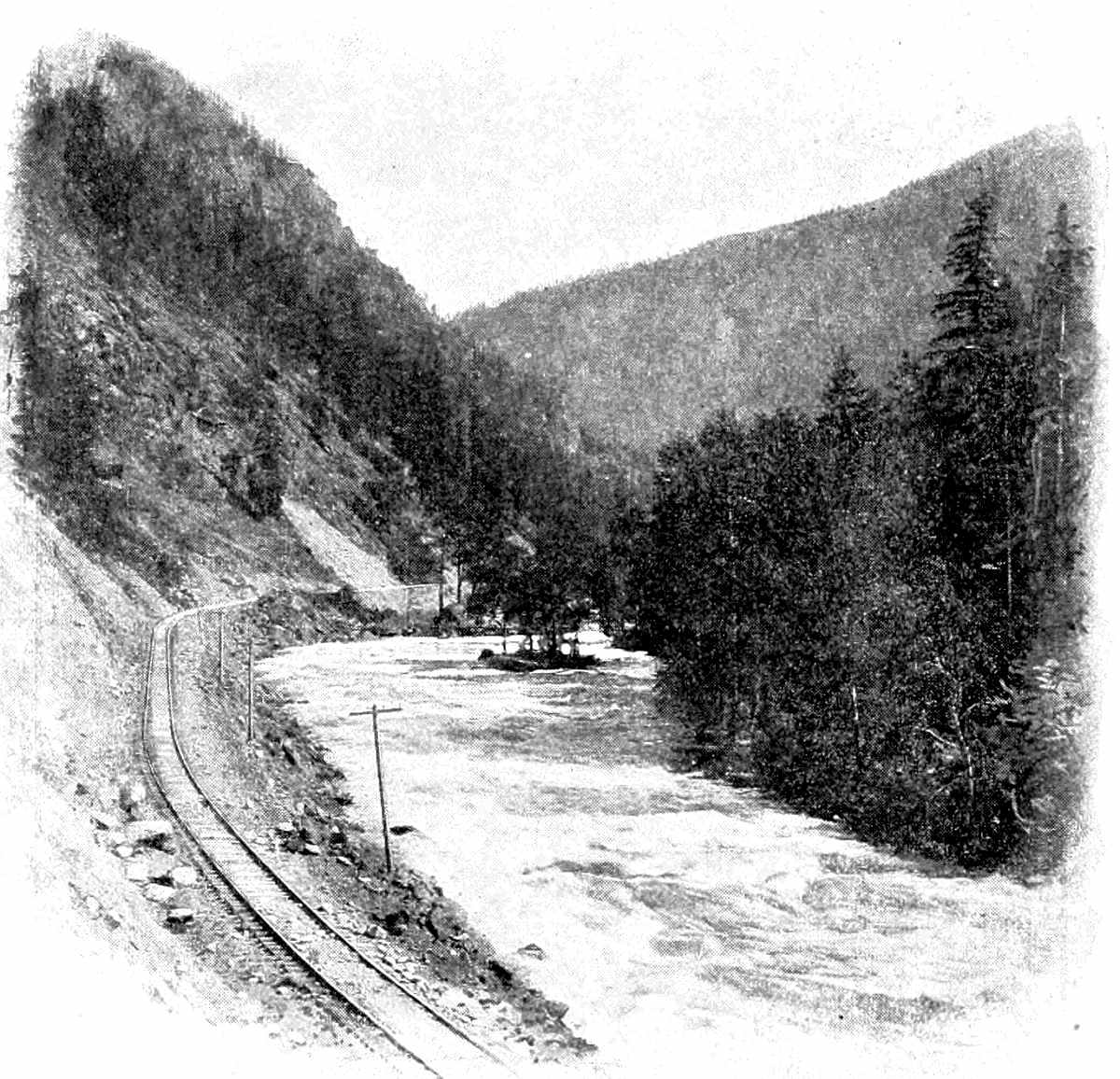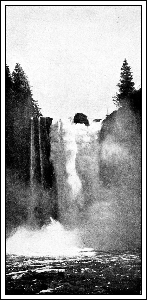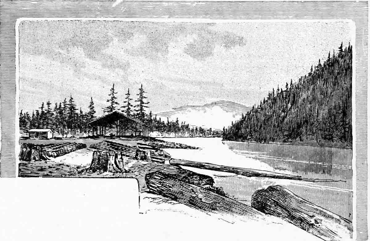 The flood of 1887 spread consternation throughout the [Pg 189] community. The water leaped down from the mountains in savage fury and scattered the dykes to the briny billows, busy hugging the beach below. Houses set sailing down the valley in tipsy joltings, and logs went chasing each other in mad bewilderment for the sea. The deluge broke into Mann's store and rose to the depth of three feet. Mr. Mann was alone in the store, and to drive away loneliness grabbed the fish line and commenced angling, caught two mountain trouts by the counter. During the same flood Mrs. Mann was sitting in the Fir Hotel chatting with some friends, and before they were aware of the enormity of the water they went sailing on their chairs around the room.