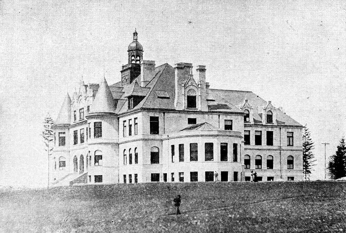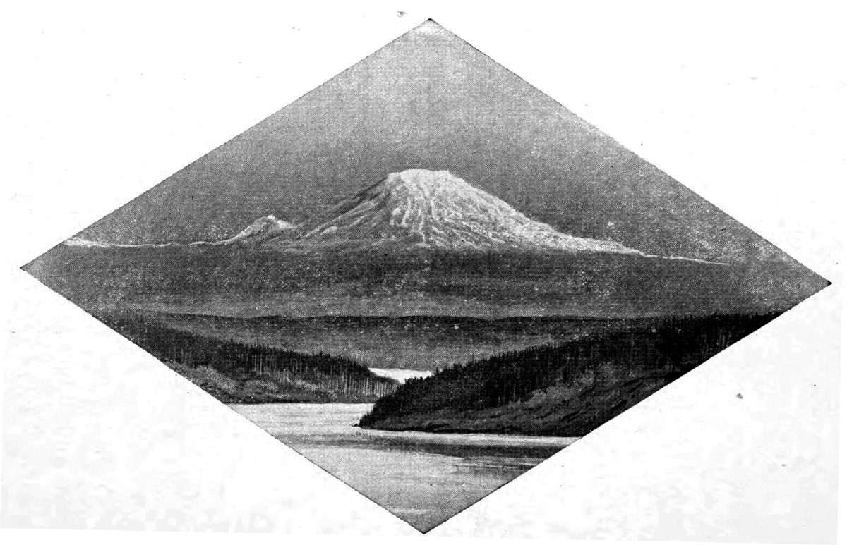It is but few places where nature has been so kind and lavishing with her store of grandeur as in Bellingham Bay. Sweet in music, the happy ripples dance to kiss the pebbled borders of the twin cities—New Whatcom and Fairhaven. Above the din of their tumults stands the white-haired Mt. Baker with a snowy hood drawn down his broad shoulders, throwing glimpses of awe over a gay landscape. About four miles from these sister cities smiles Lake Whatcom, where living gondolas ride on its glassy bosom from shore to shore.