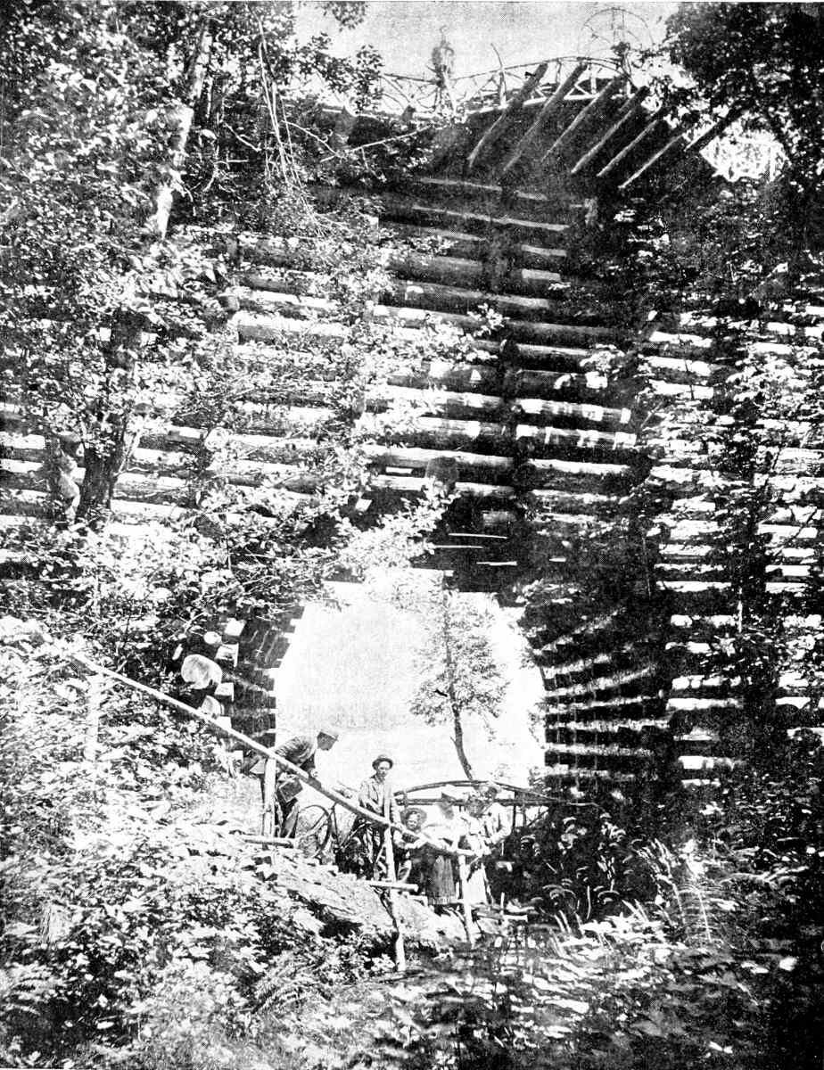 On a jolly morning, Charles Mann, the pioneer merchant of Fir, reconnoitered in the woods behind his store, and to his awe, stumbled into a hideous infernal, which was afterwards discovered to be an Indian cemetery. Ah, terror! hundreds of Indians were hanging in the trees, some nude skeletons, some with the hearts torn out of their mutilated frames; owls and crows were sailing on evil wings among the ghastly dead, and horror seemed to reign in every bush. This finding startled the whole town, and into the woods rushed young and old; flames sprang into the air and swept through the forest, and the dead Indians dropped from a hanging hell into a burning one.