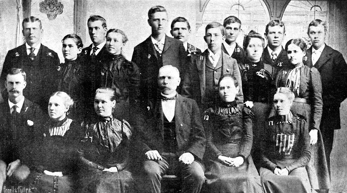 The most promising feature of a church is a healthy, wide-awake Young People's Society. Not only as an instrumentality to invite to share the glory in Heaven, but to cultivate literature and music, to cherish each others peculiarities and trend of thoughts. These societies are not exclusively [Pg 174] for the blooms of a few springs, often lingering fall with hoary hair wields the guiding staff. The most eloquent and active supporter of the Young People's Society at this place is John Lovegren, though he has blushed about twelve summers of matrimonial happiness. Of course, others have scattered sunbeams, and without their appellation the narrative would not be complete. William M. Anderson has filled the presidential chair, and Misses Minnie Johnson, Annie Anderson, Alice Carlson, Annie, Lizzie and Emma Yngve, Minnie Bergquist, Mabel Peterson, Annie and Jennie Olson, and Mrs. Edith Dacke have graced the organization with sweet music and poetry. Messrs. Andrew Bergquist, A. P. Dacke, Charley Edeen, John Carlson and Walter Jensen have contributed able assistance.