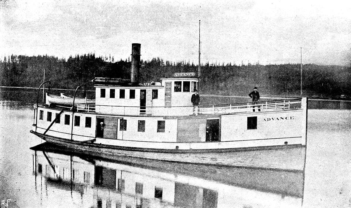 The first steamer that cleaved the bosom of the deep between Poulsbo and Seattle was the Quickstep, owned by John J. Hansen, who later built Hattie Hansen. But to burst the chains of monopolized transportation, and to usher pecuniary [Pg 206] relief to the toiling farmers, a sprinkling of valorous hearts, headed by Thomas Hegdahl and Nils Olson, perfected the organization of the Poulsbo-Colby Transportation Company, and built the beautiful steamer—Advance—which plies daily between Poulsbo and Seattle.