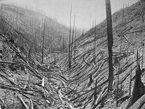 Permanent and Not Temporary Civilization Resulted. Only those people who have been brought[xli] up near a large lumbering center can appreciate what it means when a town vanishes; when all that is left of a thriving town of 5,000 or more souls is empty streets, empty houses, and heaps of tin cans. In the days of the Golden Age of lumbering in Michigan many towns flourished in the midst of the forests. These towns had thrifty, busy people, with schools, churches, banks, and other conveniences. These people were engaged in exploiting the forests. The beautiful white pine forests were converted into boards at the rate of thousands of feet every day. When these magnificent forests were laid low, the lumbermen left to seek virgin timber elsewhere. They left behind them empty towns and barren lands; only a few charred stumps remained to show where the forests once stood. But this is not an incident peculiar to the Golden Age of lumbering in Michigan. Even to-day this very thing is happening. The town of Crossfork, Potter County, Pennsylvania, had a population of over 2,500 souls in 1909. When the nearby timber was exhausted, practically the whole town was abandoned. In 1913 it had a population of 50.