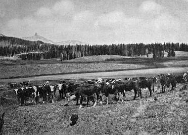 The Use of Forage and Water Resources Was Regulated. The forage and water resources of the public domain have been subject to similar abuse. Before the National Forest policy was put into effect the large ranges of the West were used indiscriminately by all. The range was subject to considerable abuse because it was used very early in the spring before the forage was mature, or too late in the fall, which prevented the forage from ripening its seed and reproducing for the next season. Not the small, local stockmen, however, but the large sheep and cattle companies, many controlled[xxxiii] by foreign capital, benefited by this condition of affairs. These "big men," as they were called, illegally fenced and monopolized large areas, varying in size from townships to entire counties. What chance would a local rancher with fifty or sixty cattle have against a million-dollar outfit with perhaps 40,000 to 50,000 cattle? He was merely swallowed up, so to speak, and had no chance whatever to get his small share. "Might made right" in those days, and it is said that if a man held any title or equity on the range it was a "shotgun" title. Also, the sheep and cattle men had innumerable disputes about the use of the range which in many cases resulted in bloodshed. If a sheep man arrived first on the range in the spring with his large bands of sheep, he simply took the feed. The Government owned the land and the forage but it had no organization in the field to regulate the use of it. It was indeed a chaotic condition of affairs and ended only after the inauguration of the present policy of leasing the lands under the permit system. These permits are issued and charged for upon a per capita basis.