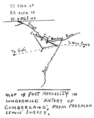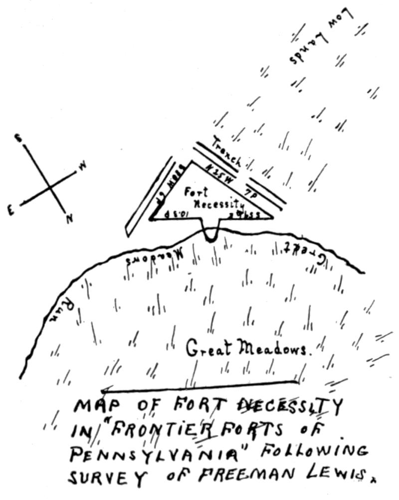 MAP OF FORT NECESSITY IN “FRONTIER FORTS OF PENNSYLVANIA” FOLLOWING SURVEY OF FREEMAN LEWIS.