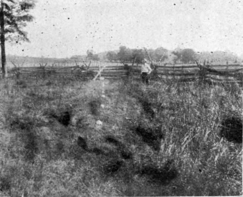 The low ground covered with rank grass, on the right, marks the rifle-pit.