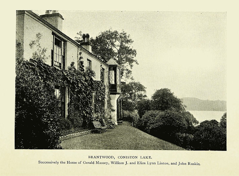 Mrs. Ratcliffe, the romancist; Grey, the elegist; William Watson, of 'Wordsworth's Grave'; Turner, [236] the artist; Gilpin, the lover of rough woodlands; and another Gilpin, 'the Apostle of the North,' in Queen Mary's days; George Fox and his farmer preachers—founders of Quakerism; Philip Sidney's sister, the lovely Countess of Pembroke—all these belong more or less to the Lake Counties, and the homes of most of them, while resident here, are yet to be seen. Brantwood looks over Coniston Water to the quaint round chimneys and the gables of the century-stained hall of the Le Flemings, and beyond it towers the gigantic cone of the Old Man mountain. Dove Cottage, with its pretty garden laid out by the hands of William and Dorothy Wordsworth, nestles beneath the wooded hill at Grasmere. Greta Hall yet stands in Keswick, and the row of lodging-houses where the author of 'Thorndale' and of 'Gravenhurst' met the wife who proved the soul of his soul, and has written so sweetly of her spouse. William Clarkson's retreat is on Ullswater's shore-lands; and the honeymoon home of Tennyson, 'Tent Lodge,' on those of Coniston.