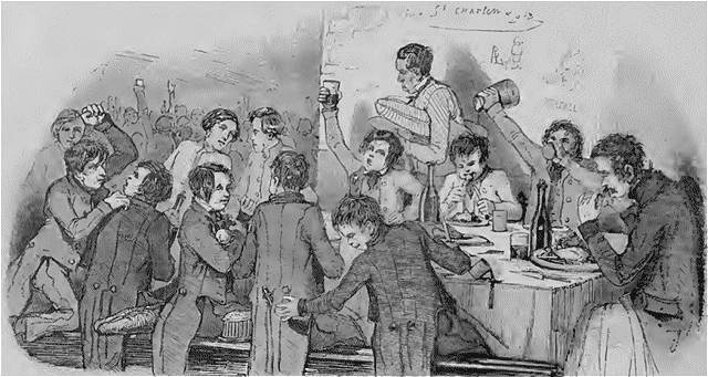 On boit, en effet, à ce festin d'écoliers que Balthazar n'accepterait pas, mais que la vive gaieté de l'enfance assaisonne et rend plus aimable que les splendides repas; oui, on y boit.... jusqu'à du Champagne; mais les coteaux d'Aï n'en sont pas complices; c'est un nectar parfaitement doux de caractère, dont saint Charlemagne est l'inventeur prudent et l'unique propriétaire.