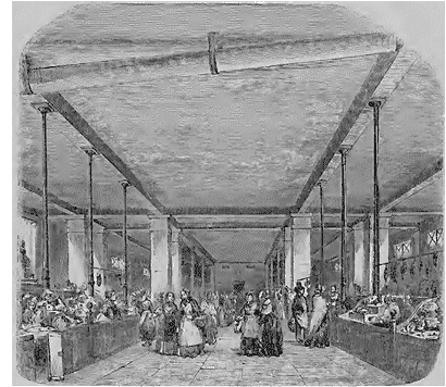 Les nombreuses constructions entreprises sur les terrains situés entre la rue du Faubourg-Poissonnière et celle du Faubourg-Saint-Denis ont amené un résultat semblable, et les propriétaires du bazar de l'Industrie, situé sur le boulevard Bonne-Nouvelle, ont obtenu de la ville de Paris le droit de consacrer l'étage demi-souterrain de cette propriété à l'établissement d'un marché.