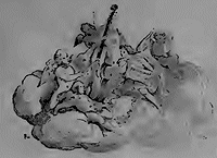 M. A..., remarquant dans votre rébus un rayonnement circulaire d'un diamètre fort étendu, pensa que l'intention de l'auteur avait été de représenter le soleil. Cela posé, il constata au centre de l'astre la présence d'une laie et les attributs généraux des beaux-arts. Armé de ces deux éléments de conviction, il arriva successivement à la combinaison d'une phrase ainsi conçue:
