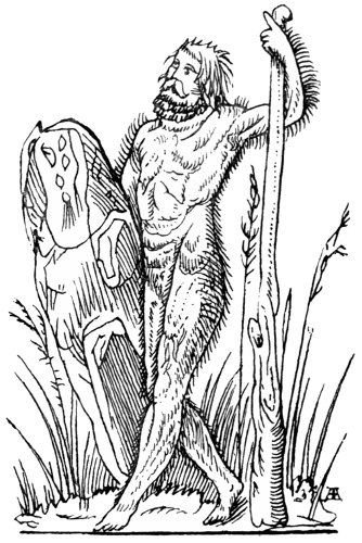 Sometimes a specimen of humanity has got astray in infancy, and has been dragged up somehow in the woods, like Caspar Hauser, and Peter the Wild Boy, and fiction supplies other instances, such as Romulus and Remus, Orson, &c. Some of them were credited with being hairy as are the accompanying wild man and woman, as they are portrayed in John Sluper’s book, where they are thus described:—
