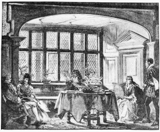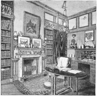 The best standards, indeed, Mr. Carr is generally able to show in his own house. His taste and that of his wife have made their house beautiful. It would be difficult to find a prettier room than the dining-room, which our artist has drawn with care; but much of its beauty depends upon the soft colors and tints of its walls and its genuinely old furniture. This house, known as the Tower House, is as elegant, comfortable, and charming as need be desired even by those whose home is the seat of a continuous and liberal hospitality. The hall, landings, and rooms are all spacious and well proportioned; yet the entire building, arrangements, and decorations have probably not cost four thousand pounds.