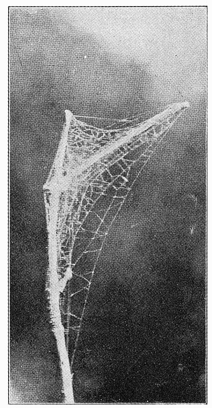Fig. 495. Horizontal web of Uloborus near the ground, one side attached to a fallen