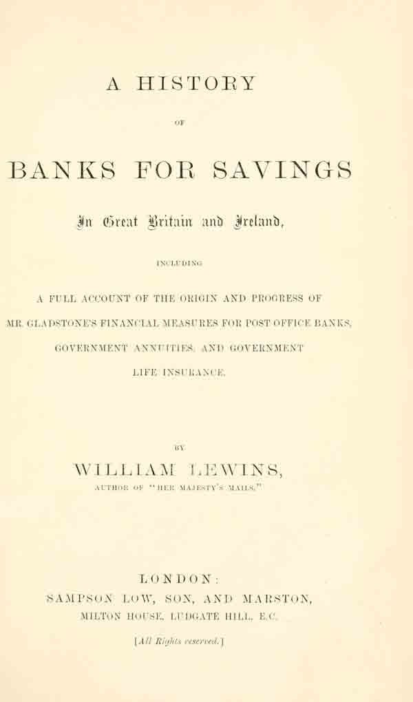 The Project Gutenberg eBook, A History of Banks for Savings in Great Britain and Ireland, by William Lewins