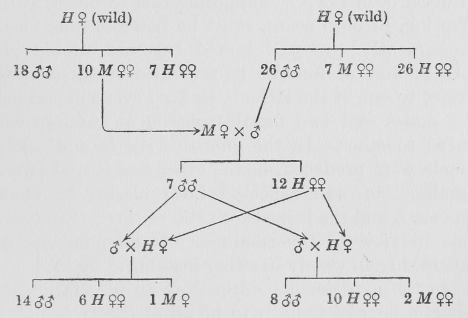 [54] An interesting case of a similar nature has recently been published by Hasebroek (Die Umschau, 1913, p. 1020). A melanic form of the moth, Cymatophora or, suddenly appeared near Hamburg in 1904. This new form, to which the name albingensis was given, rapidly became the predominant one. In 1911-1912 over 90% of the moths reared from caterpillars taken in the open were of the albingensis form; nor were any intermediates found between it and the typical form. Some experiments were also made which shew that the albingensis form behaves as a dominant to the original type form.