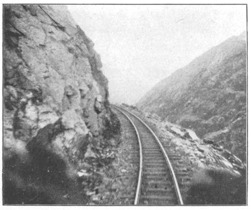 Traversing the divide and coming out from the long tunnel which bows above the continental height of land, we diverged from the main line and crept yet higher right up into Leadville, where the air was thin and keen and as chill as in December. Thence we descended through the wonderful cañon of the Platte River that has made this journey on the Denver and Rio Grande Railway famous the world round.
